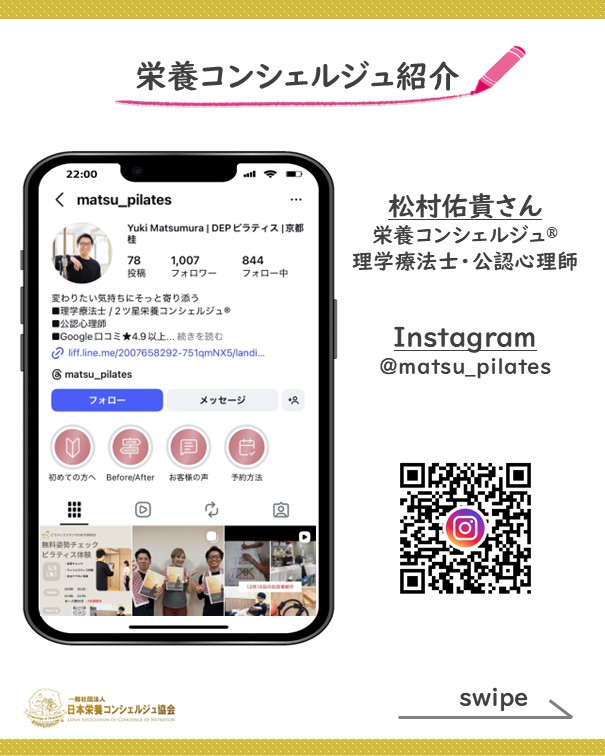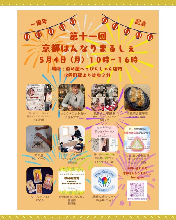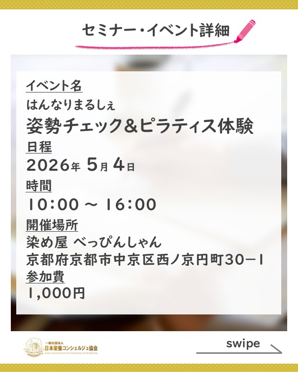 2ッ星栄養コンシェルジュで理学療法士・公認心理師の松村佑貴さんが5月4日(月祝)に京都にて開催される、『はんなりまるしぇ』にて姿勢チェック&ピラティス体験のブース出店をされます☆